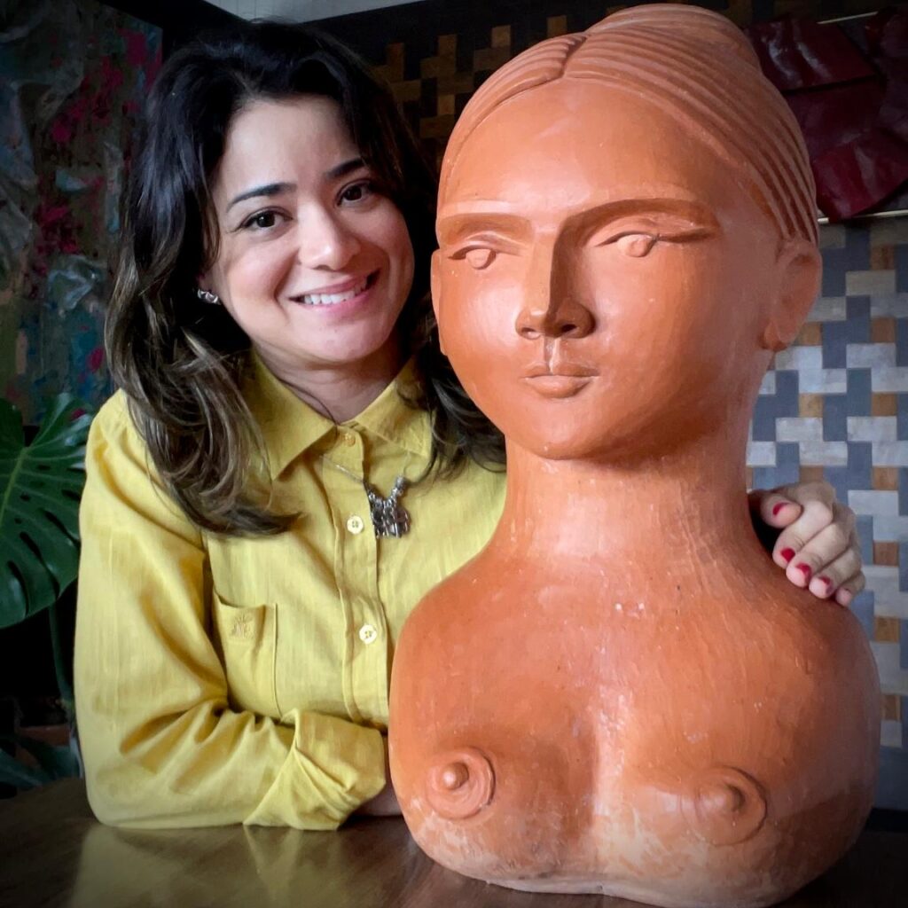 Além de produzir esculturas e pinturas, ministra cursos on-line e presenciais em seu ateliê localizado em Nova Petrópolis-RS.